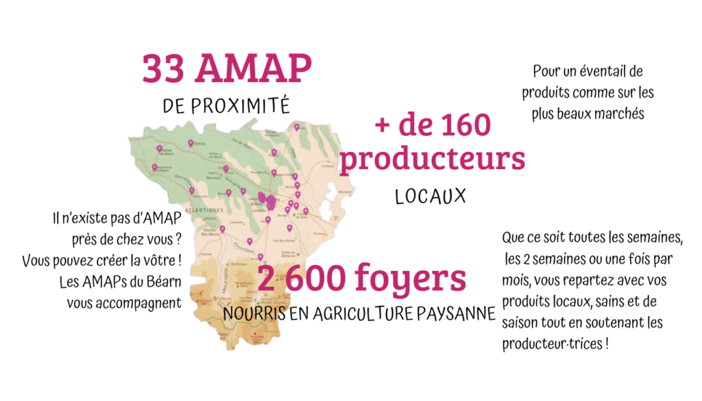 En Béarn, les AMAP existent depuis 2004. Le Collectif AMAP Béarn anime le réseau.